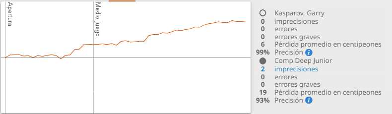 20231209GraficoPartida1 Publicado por Juan Antonio Rodríguez Parra viernes, 08-12-2023También puede interesarte:Veinte años del encuentro Kasparov-Deep Junior 2003 También puede interesarte:Veinte años del encuentro Kasparov-Deep Junior 2003